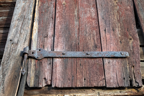 Obraz premium old shutter with rusty hinge in a barn