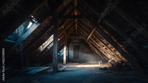 © Daniel, Fototapeta premium Old spooky attic of abandoned house