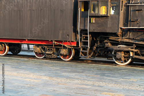 © gjp311, Naklejka premium Old steam engine train and parts close-up