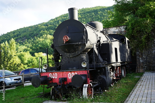 Naklejka premium Old steam locomotive at Piazza al Serchio, Tuscany, Italy