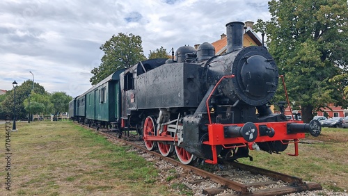 Fototapeta premium Old steam locomotive on display outdoors