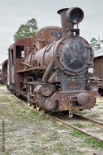 © Dmitry Grushin, Fototapeta premium Old steam locomotive on the railway
