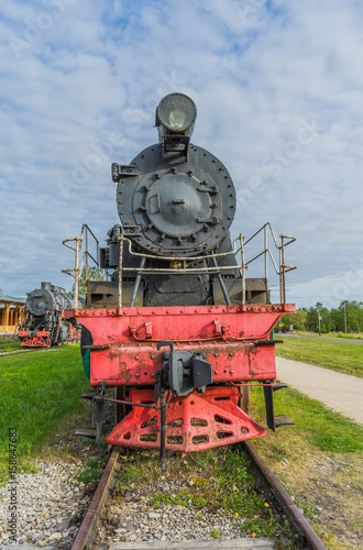 © photoexpert, Naklejka premium Old steam locomotive train under blue sky