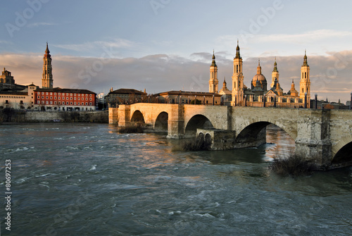 Fototapeta premium Old stone bridge across Ebro river in Zaragoza