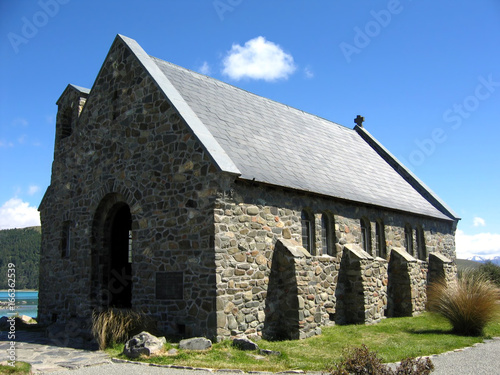 © Yves, Fototapeta premium Old Stone Church under a Blue Sky