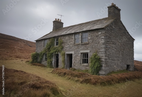 Fototapeta premium Old stone private house in a secluded location, scenic spots, daytime, vintage, abandoned