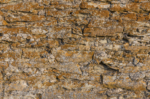 © VertigoBarrov, Obraz premium Old stone wall texture with moss