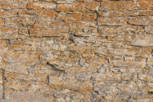 © VertigoBarrov, Obraz premium Old stone wall texture with moss