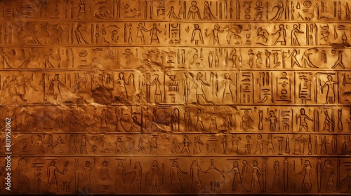 Obraz premium Old stone wall with Egyptian hieroglyphs, Ancient hieroglyphic writing with...