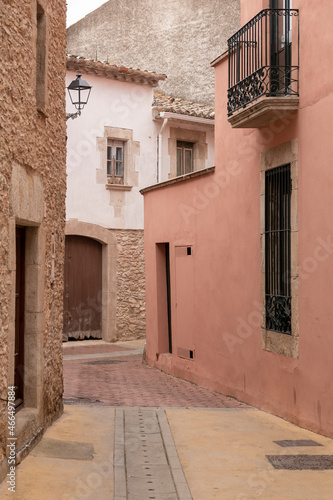 © larrui, Fototapeta premium old street in begur with pastel colored houses