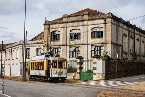 © Mauricio O., Naklejka premium old street in the old town with an old tranvia