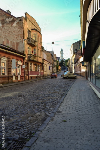 Obraz premium old street with a cobblestone pavement, Uzhhorod, Ukraine
