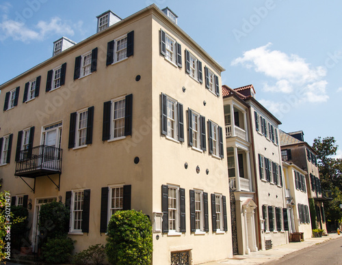 © dbvirago, Fototapeta premium Old Stucco Building with Black Shutters