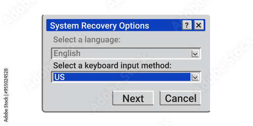 © Богдан Скрипник, Fototapeta premium Old System recovery options. Window with system settings. Retro control panel.