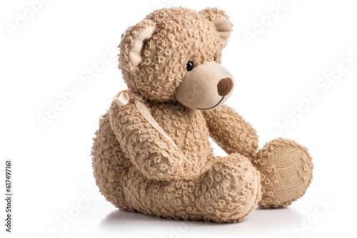 © Iryna, Obraz premium Old teddy bear isolated on white background.