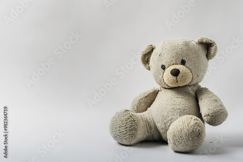 © Alexandr, Obraz premium Old teddy bear on white background with space for text