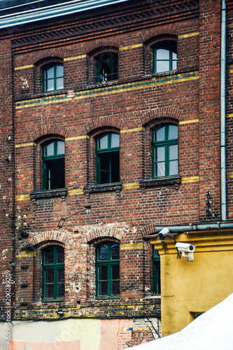 © WeźTylkoSpójrz, Fototapeta premium old tenement house with windows and brick wall