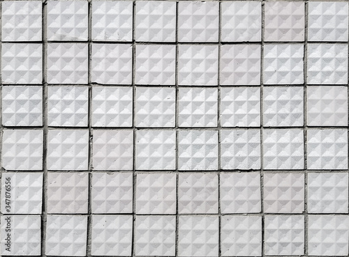 © Dmytro, Fototapeta premium Old textured square white ceramic tiles.