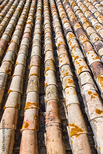 Fototapeta premium Old tile roof with red tiles