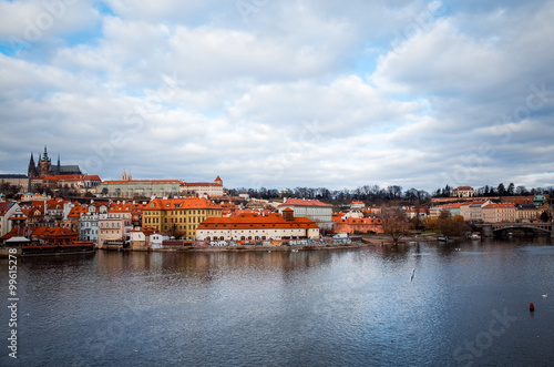 © ilolab, Fototapeta premium Old Town ancient architecture and river pier in Prague, Czech Re