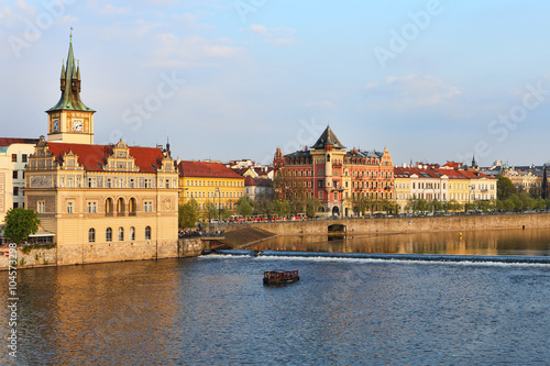 Obraz premium Old Town ancient architecture and Vltava river pier in Prague