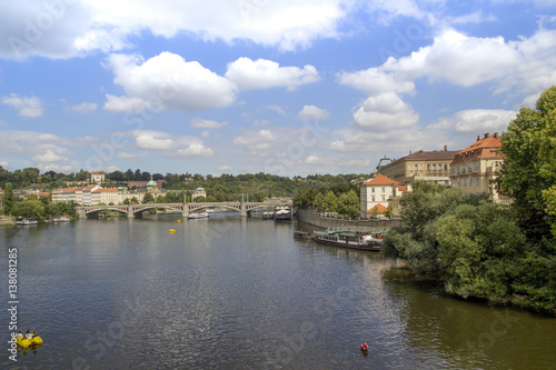 Fototapeta premium Old Town architecture and Charles Bridge over Vltava river in Prague