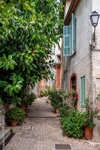 © Jeff Whyte, Fototapeta premium Old town city street in the French city of Villefranche Sur Mer.