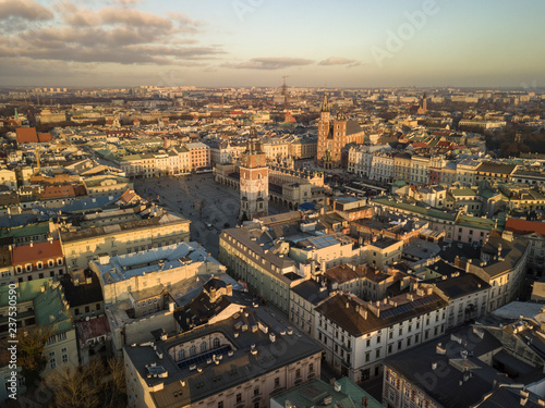 © Krzysztof Tabor, Obraz premium Old Town from a bird's eye view in Krakow, Poland