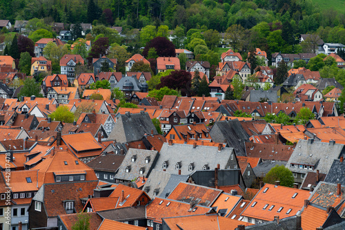 Obraz premium Old town "Goslar" at the "Harz" in Germany wild old rooftops in orange