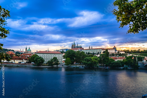 © Bogusz, Naklejka premium Old town of Prague over river Vltava with Saint Vitus cathedral on skyline. Praha panorama landscape view