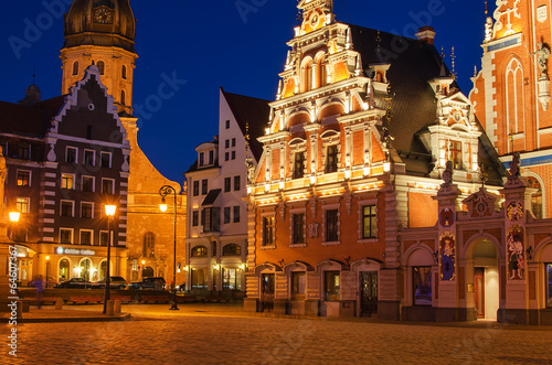 © krivinis, Fototapeta premium Old Town of Riga (Latvia) at night