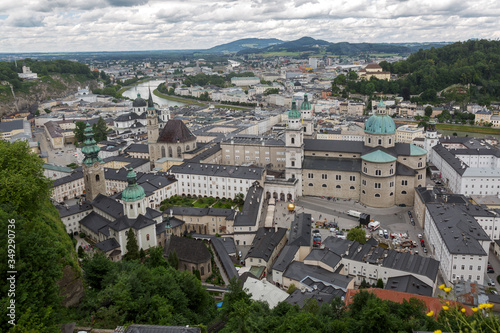 © sergei, Fototapeta premium Old town of Salzburg taken from a bird's eye view. From Hohensalzburg Fortress