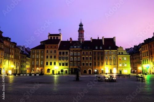 © Artur Bociarski, Fototapeta premium Old town square at night in Warsaw, Poland