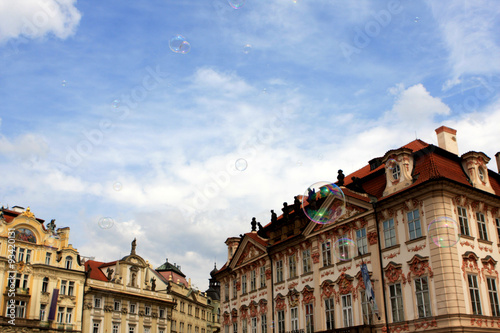 © Eve81, Naklejka premium Old Town Square (Staromestske namesti) with soap bubbles, Prague, Czech republic