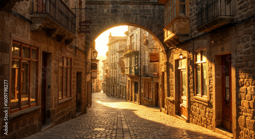 © Lester, Fototapeta premium Old Town Street with Stone Archway.