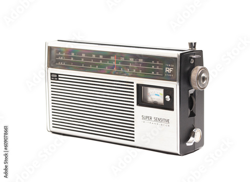 © yurchello108, Fototapeta premium Old transistor radio isolated on white