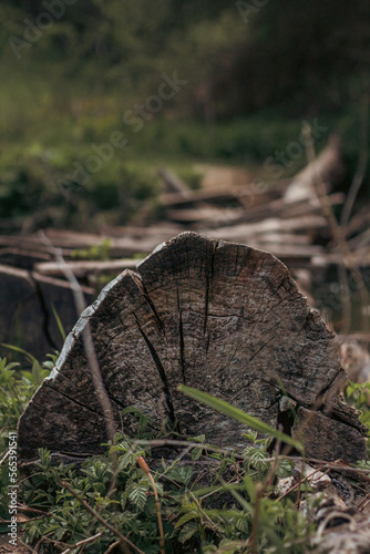 © Dimitar, Obraz premium Old tree log by the riverside