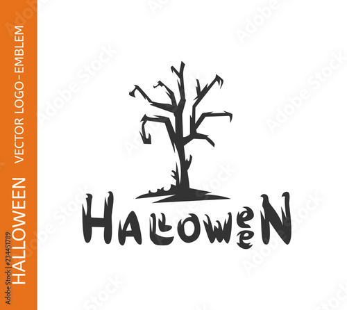 © strilets, Fototapeta premium Old tree logo - emblem design on white background, halloween vector illustration