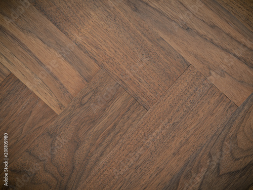 © Andreas Berheide, Fototapeta premium Old used herringbone walnut parquet