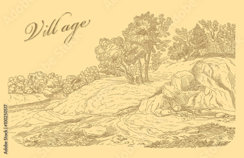 © Alexey Pavluts, Naklejka premium Old village art illustration