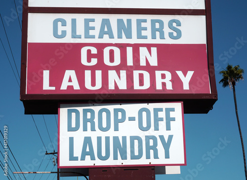 © jdoms, Fototapeta premium Old vintage coin laundry sign