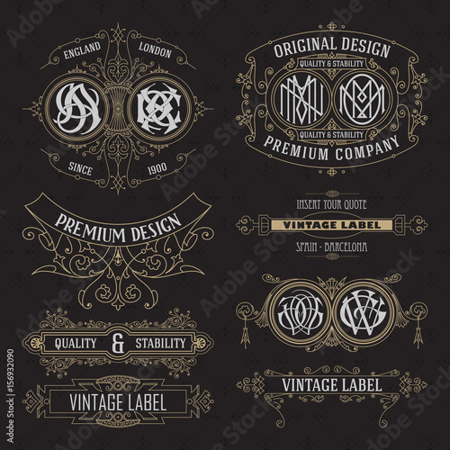 Obraz premium Old vintage floral elements - ribbons, monograms, stripes, lines, angles,border, frame,label, logo - vectors