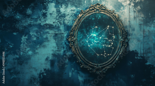 © Nata, Obraz premium old vintage mirror with astrological constellation inside. stars and astrology