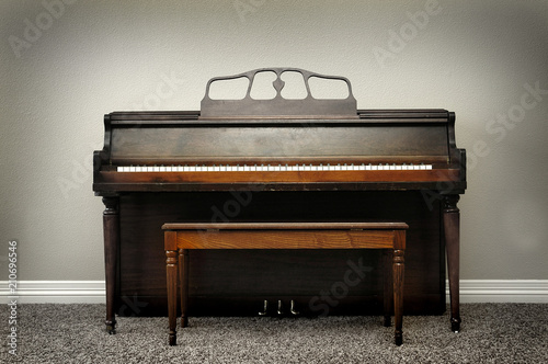 © Lane Erickson, Fototapeta premium Old Vintage Piano in Home With Rich Wood Tones