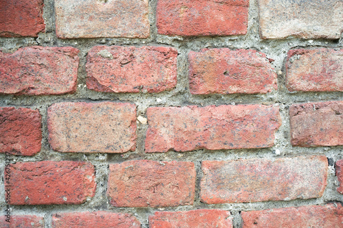 Obraz premium Old vintage red weathered brick wall, background, pattern, texture, banner