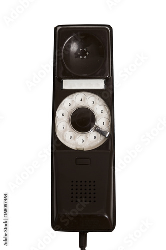 © pavelgulea, Fototapeta premium Old vintage stationary brown telephone with a tube