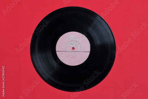 © f2014vad, Fototapeta premium Old vinyl record. Worn and dirty. They lie on the surface of coral color.