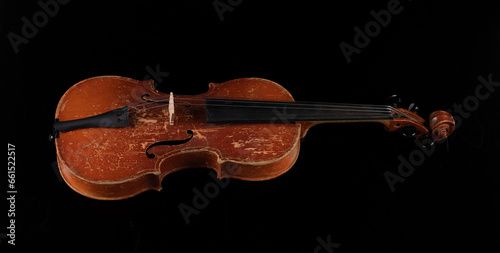 © serikbaib, Fototapeta premium old violin isolated on black background