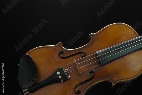 © fotofabrika, Fototapeta premium Old violin on a black background
