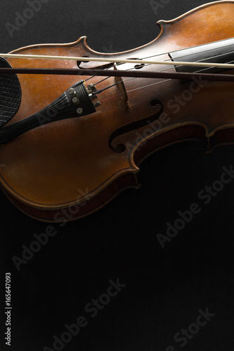 © fotofabrika, Fototapeta premium Old violin on a black background